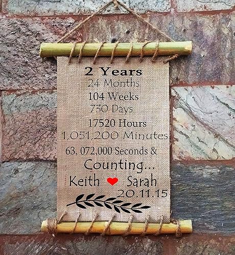 Amazon Com 2 Years And Counting Initials Heart Love Burlap Art Print Custom 2nd Anniversary Gifts For Him Her Handmade Cotton Fabric Wedding Anniversary Gift For Husband Wife Burlap Print Handmade - That is a long time!