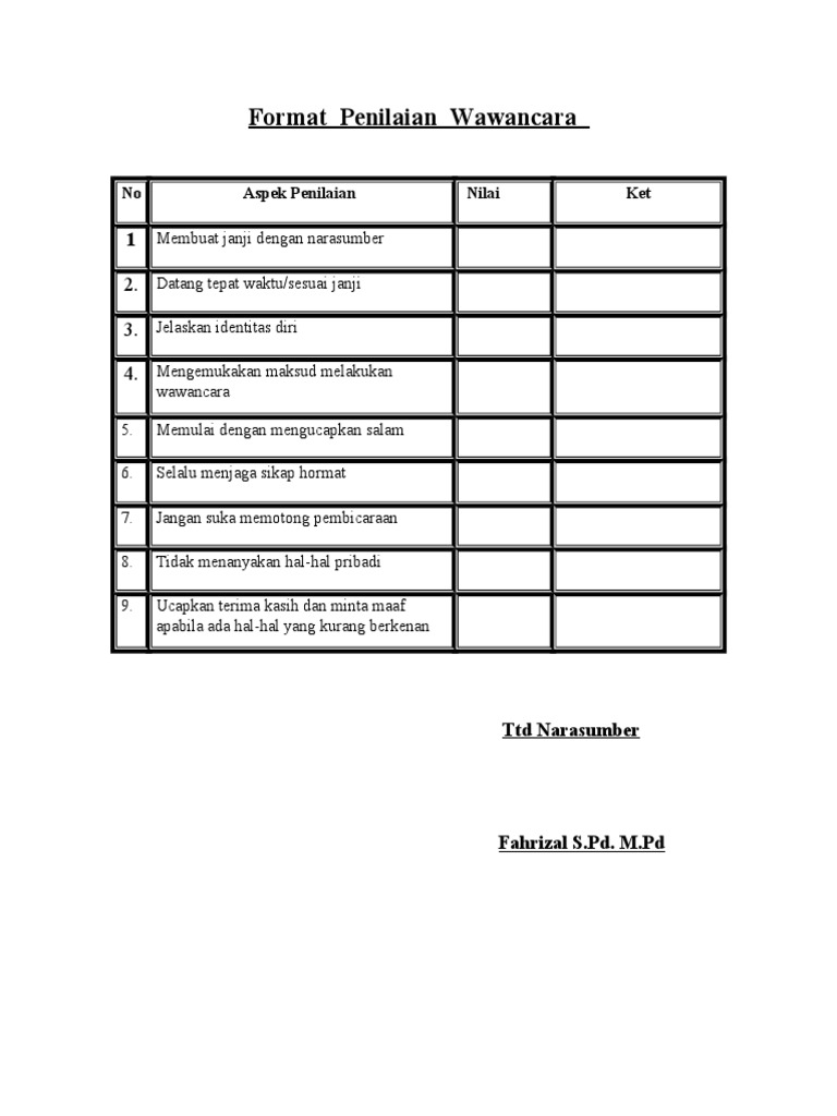 Ide Format Penilaian Tes Wawancara Kpps Paling Heboh - Wawancara adalah tanya jawab antara dua pihak yaitu pewawancara c.responden sendiri memberikan penilaian sendiri terhadap jawaban yang harus diberikan.