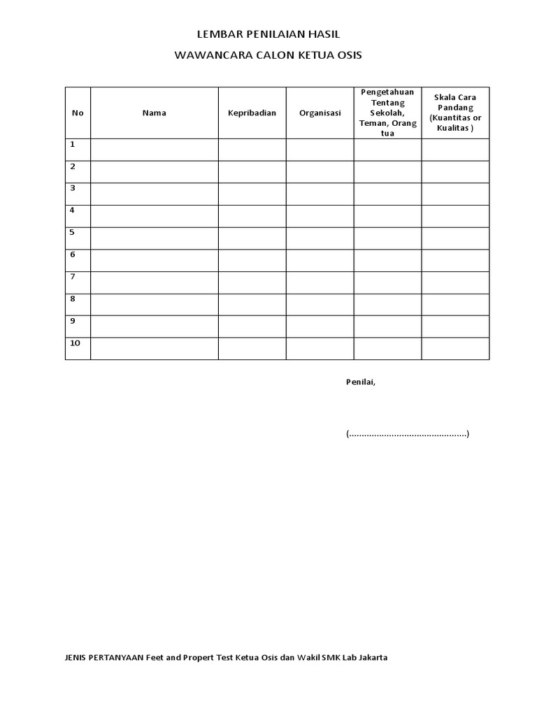 Format Penilaian Interview Guru Paud - Penilaian wawancara calon pengurus osis sman 10 melati samarinda periode 2010/2011 nama calon 13.