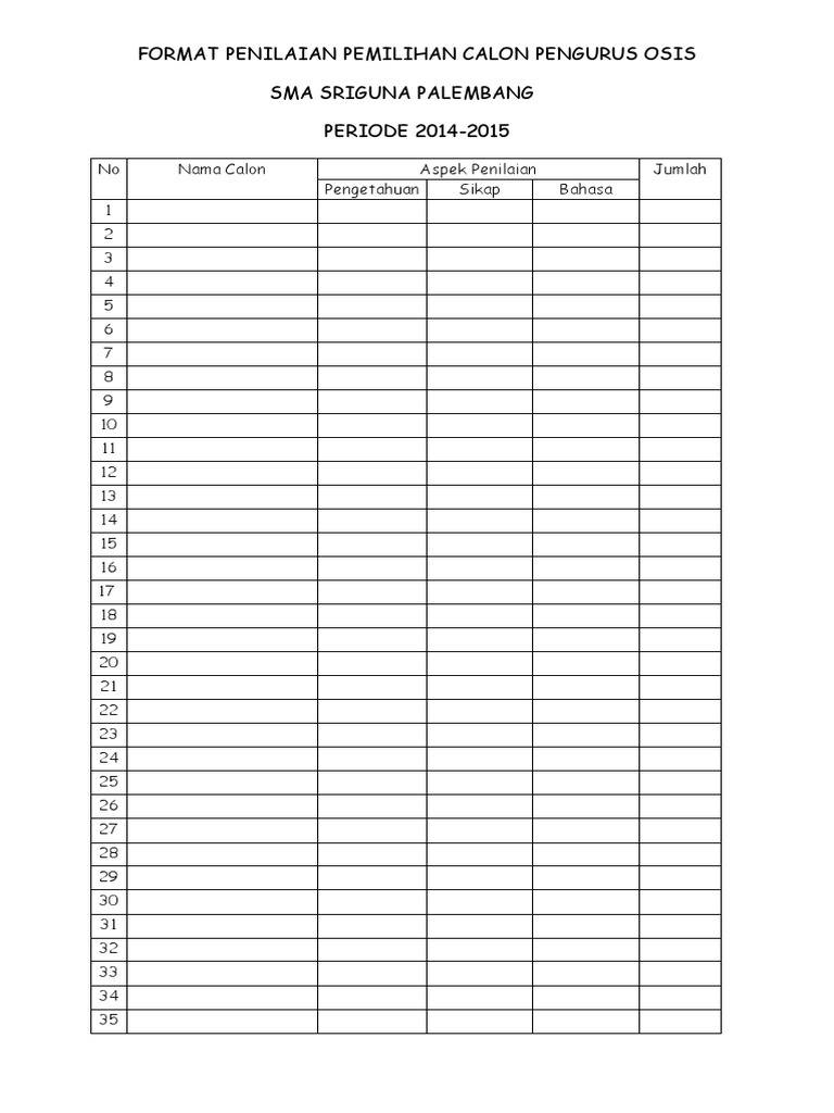 Format Penilaian Pemilihan Calon Pengurus Osis Sma Sriguna Palembang Periode 2014 2015 - Di sini yang di lihat adalah sikap bersalaman subjek saat.