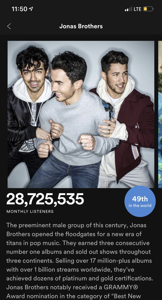 Daily Nick Jonas On Twitter The Jonas Brothers Remain The 49th Most Listened To Artists In The World On Spotify It S Crazy To Think That 4 Months Ago They Weren T Together Publicly - You look like someone who appreciates good music.