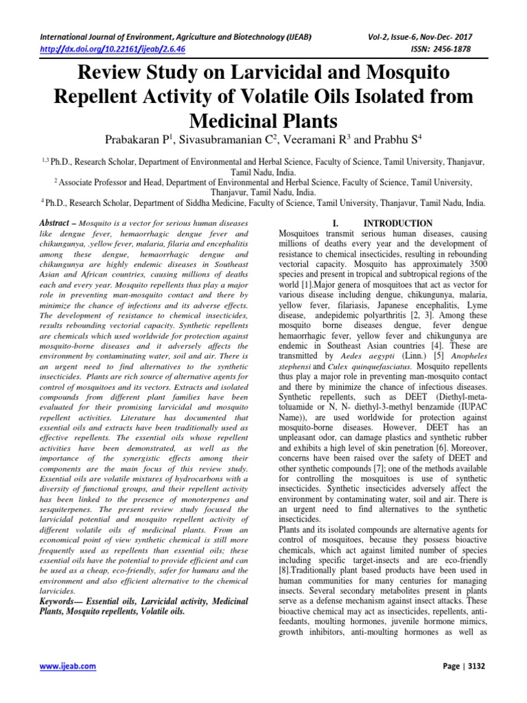 Review Study On Larvicidal And Mosquito Repellent Activity Of Volatile Oils Isolated From Medicinal Plants Malaria Mosquito - What does volatile oil mean?